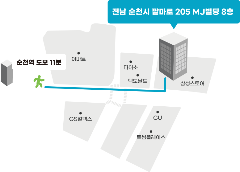 주소 : 전라남도 순천시 덕암동 161-1, MJ빌딩 8층