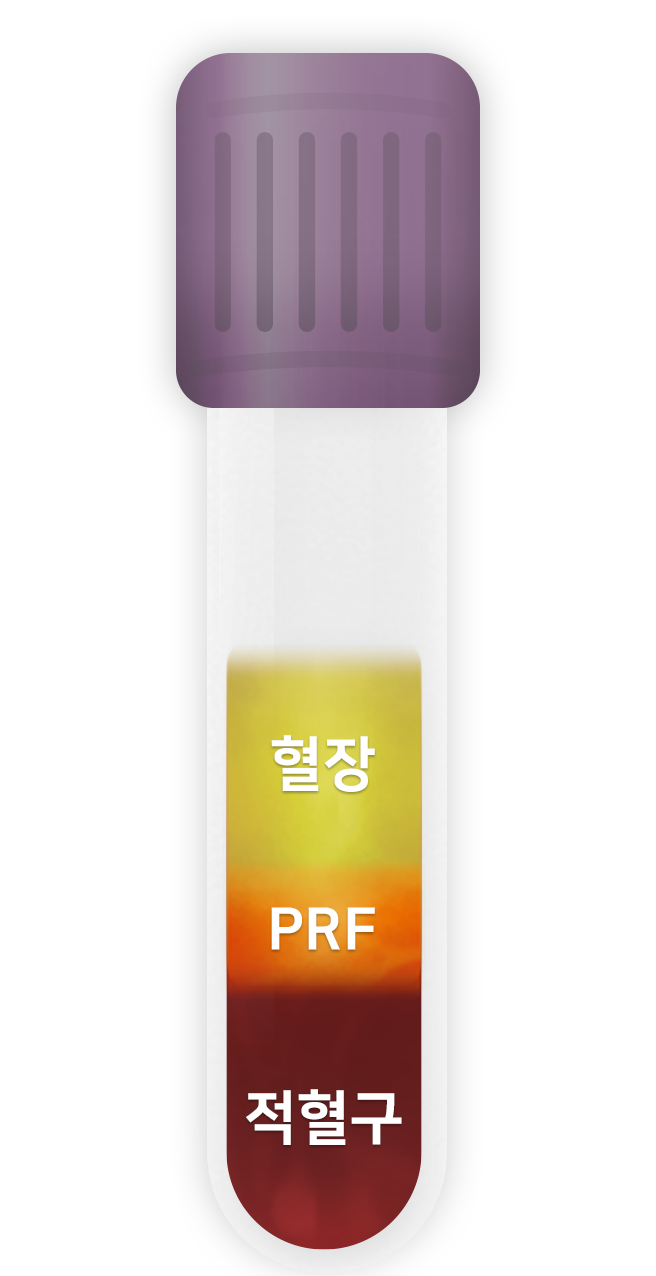 임플란트 등 치과 치료에서 자가회복 능력은 만족스러운 치료 결과를 위해 중요한 요인입니다. 특히, 상악동거상술이나 뼈이식이 필요한 경우 PRF는 단단한 잇몸뼈 형성에 중요한 역할을 하는 것으로 알려져 있습니다. 환자 자신의 혈액에서 추출한 고농축 혈소판과 백혈구는 임상적 부작용이 거의 없으면서도, 상처 치유 기간인 7~10일 동안 골과 피부 형성을 유도하는 단백질을 지속적으로 방출합니다.